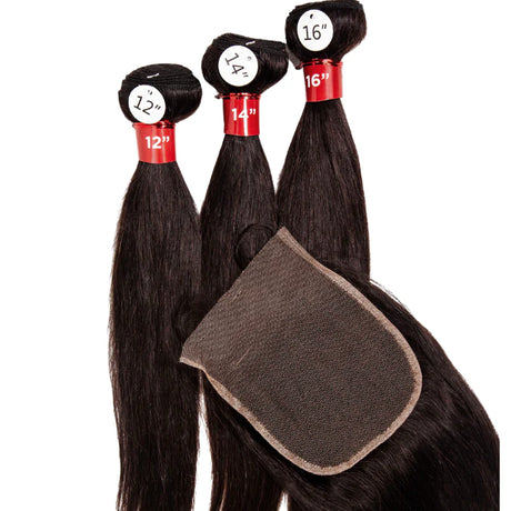 Boss bundle 100% virgin human hair straight 4x4 closure - 12"