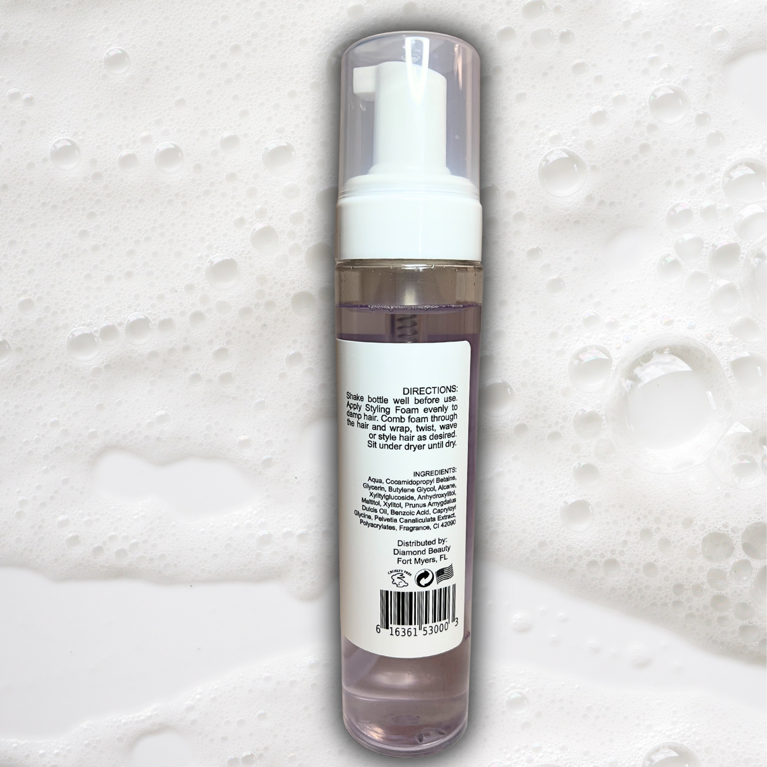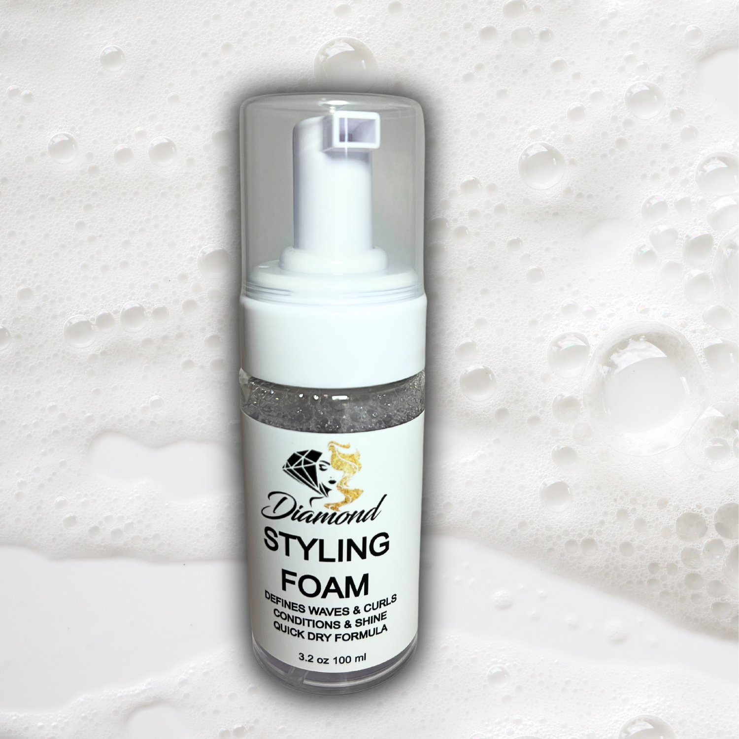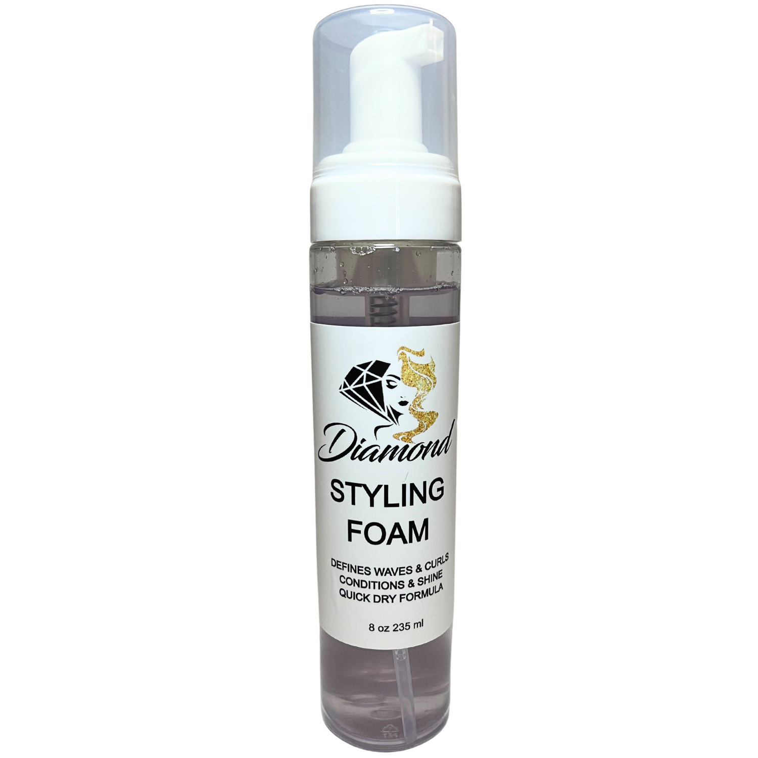 Diamond Styling Foam is a lightweight, mousse-like formula designed to provide volume and hold for a variety of hairstyles. It helps to define curls, add bounce to straight hair, and provide structure for braids or twists. The foam dries quickly and leaves hair soft without a crunchy texture. It’s ideal for achieving a natural, flexible hold with a shiny, frizz-free finish.