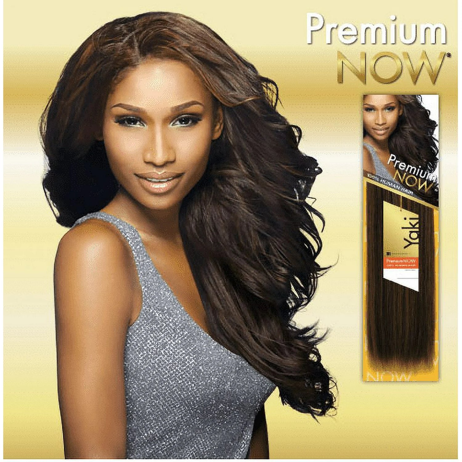 An 18-inch Yaki hair weave from Premium Now in Jet Black, offering a smooth, natural texture. Soft, tangle-free strands provide easy styling for sleek and polished looks.