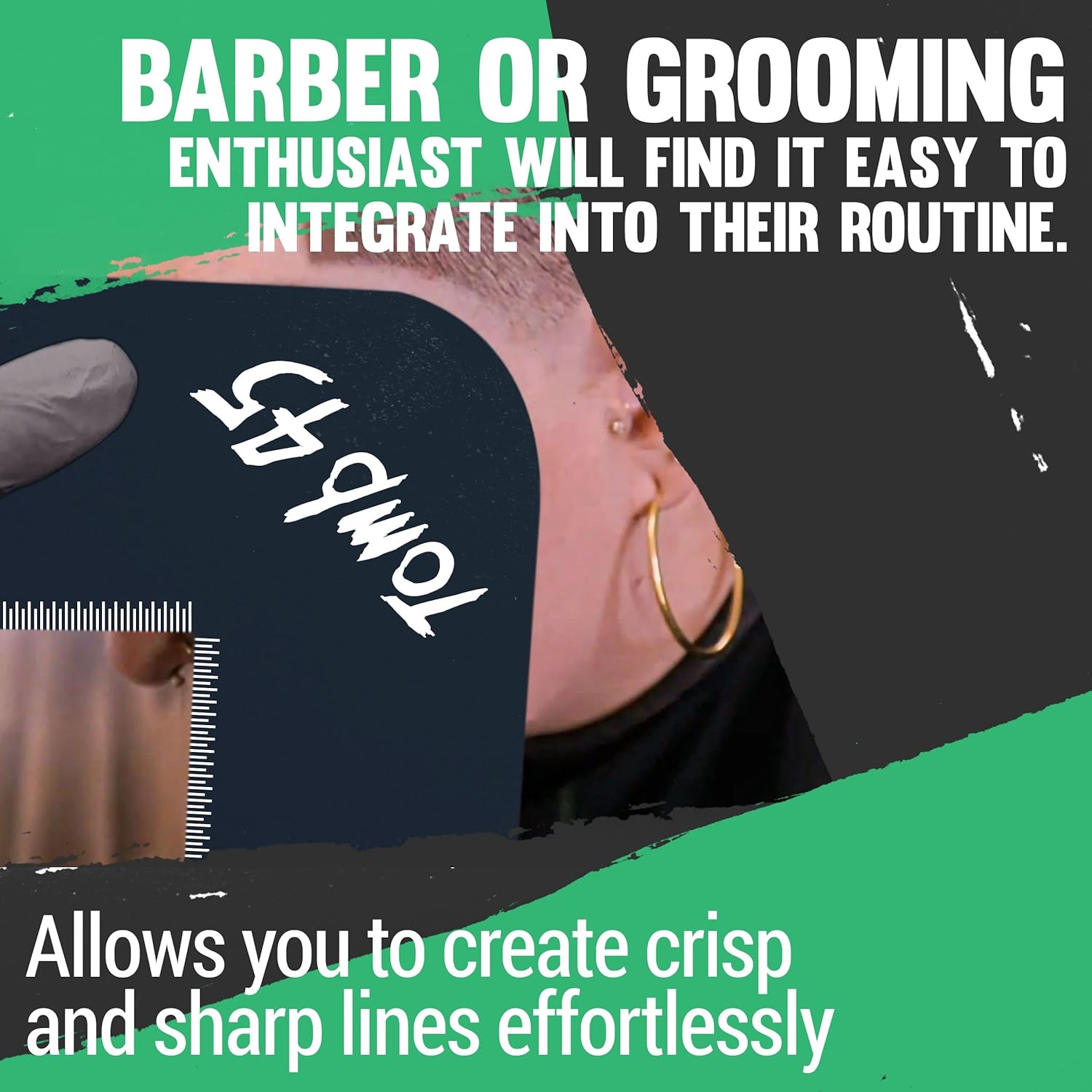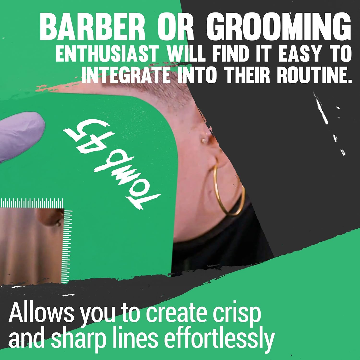 A durable barber positioning card that helps achieve sharp, clean hairlines with precision. Ideal for professional edge detailing.