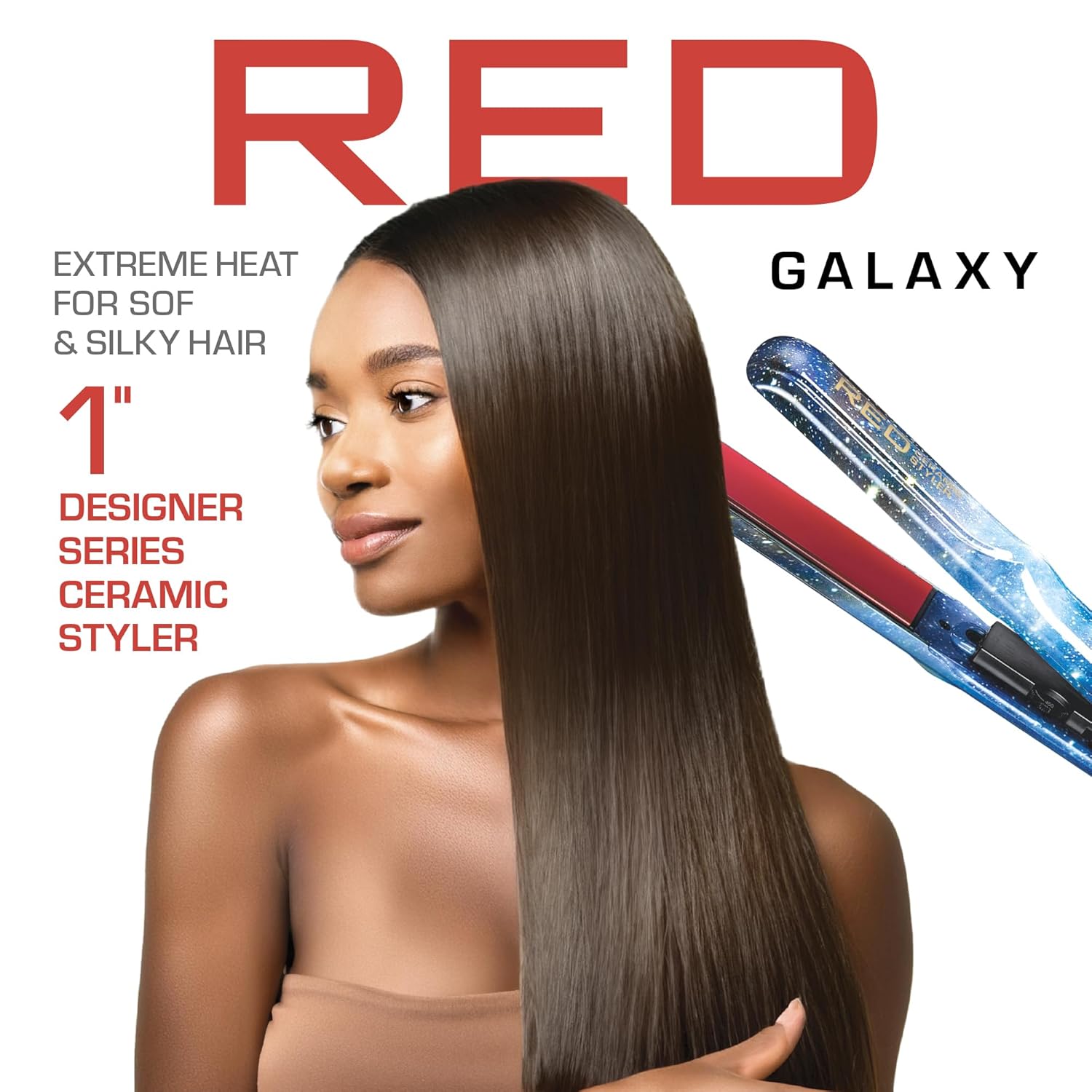 RED BY KISS 1" FI Designer Series Galaxy Flat Iron delivers smooth, frizz-free styling with even heat distribution and durable plates for sleek hair. Ideal for straightening and versatile styling.