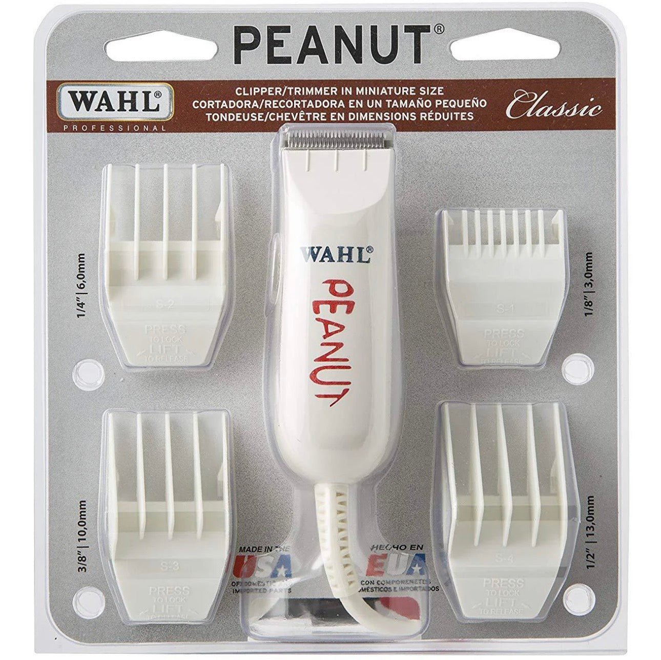 The Wahl Peanut Trimmer in White is a compact yet mighty grooming tool, perfect for precise detailing, touch-ups, and intricate designs with its ultra-sharp blades. Its lightweight, ergonomic design fits comfortably in your hand, making it ideal for both professional barbers and at-home use