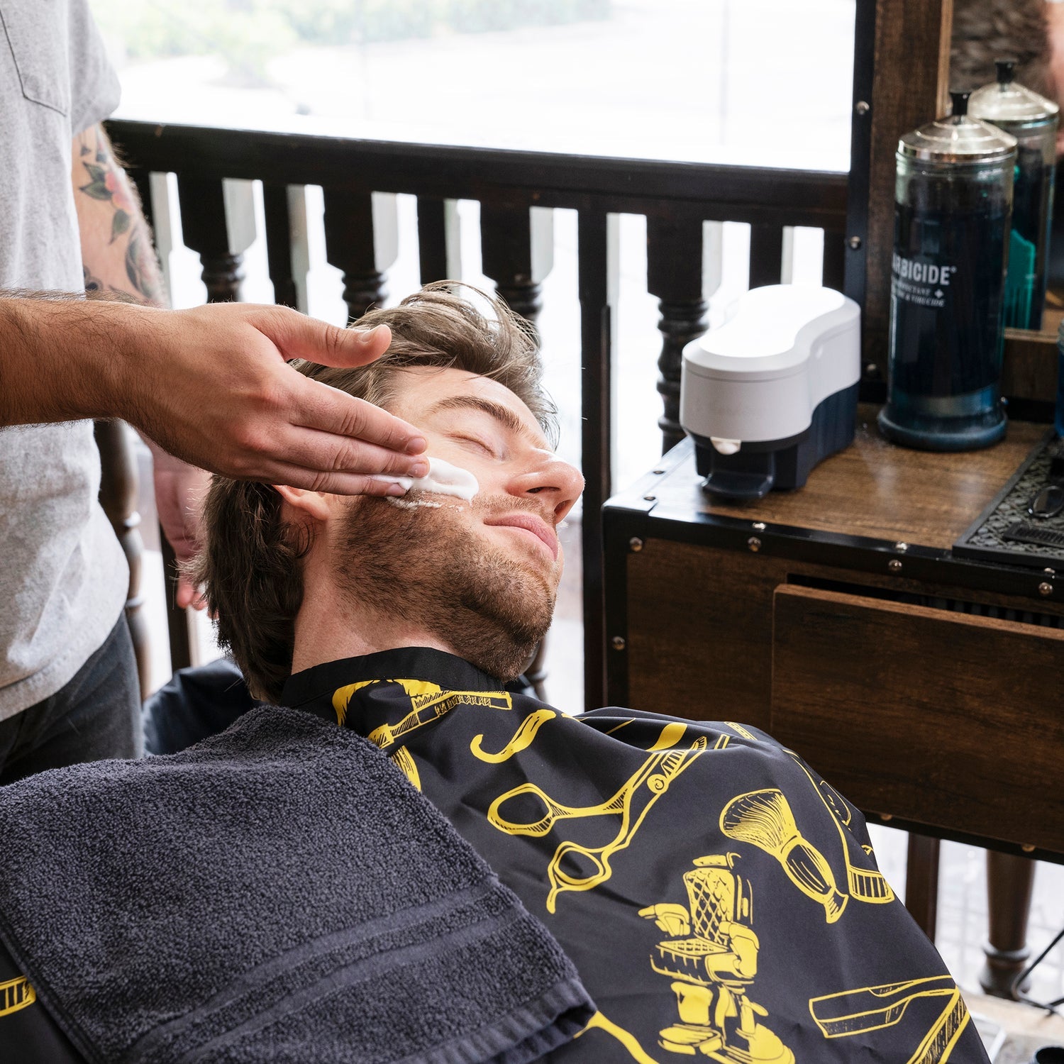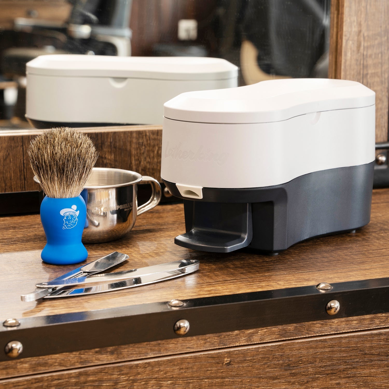A professional lather machine designed to produce warm, rich shaving foam for barbershop-quality shaves. Enhances comfort, glide, and overall shaving experience.