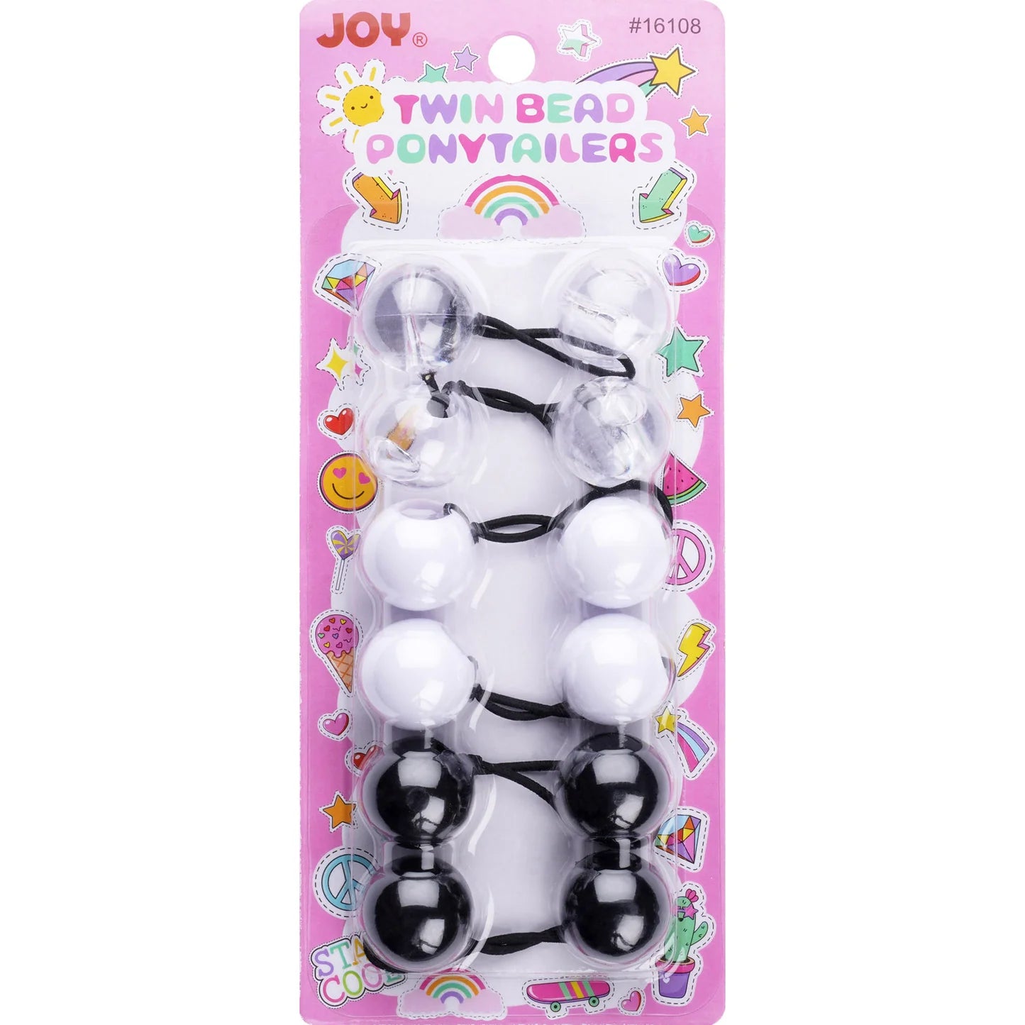 Joy Jewelry Clear, White & Black Twin Hair Beads 6Ct (16108) is backordered and will ship as soon as it is back in stock.